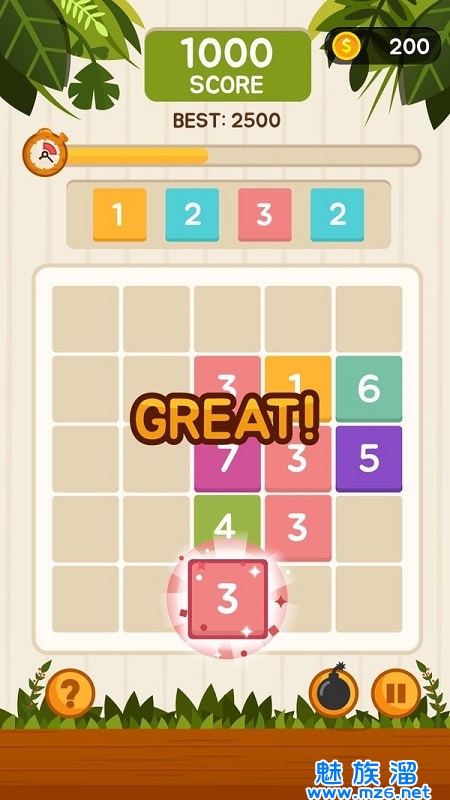 1、数字合并:玩家需要用相同的编号连接至少3个数字块,合成更大的数字,目标是获得最大的数字。