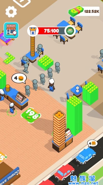 1、在游戏中玩家将扮演汉堡店的老板,经营和发展自己的汉堡帝国。