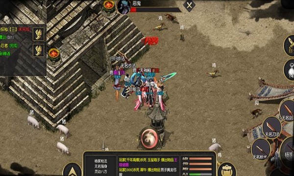 1、多人在线模式可与其他玩家一同游戏和互动,组成战队,组队打怪、PK等。