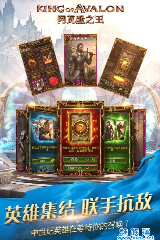 英雄召唤 - 从魔法阵中召唤亚瑟王故事经典角色一同战斗。
