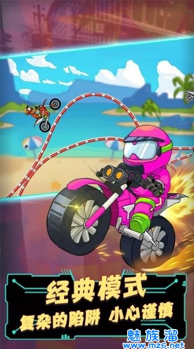 3、应战不同的竞赛形式和赛道,让你领会各种不同的游戏兴趣。无论你是摩托车爱好者还是喜欢竞速游戏的玩家