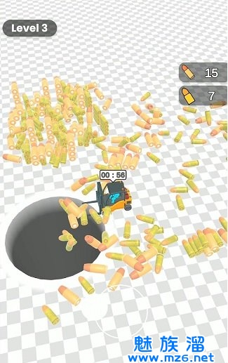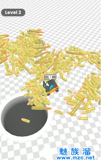 弹药之战官方版是一款超好玩的趣味休闲类手机游戏,游戏中玩家驾驶着推车来进行子弹的搜集,地图上会随时出现一些黑洞,玩家需要将散落在地上的子弹推到黑洞中,超解压轻松的娱乐玩法可以随时进行玩耍挑战,还有各种有趣的玩法模式,感兴趣的小伙伴快来下载这款弹药之战官方版吧!
