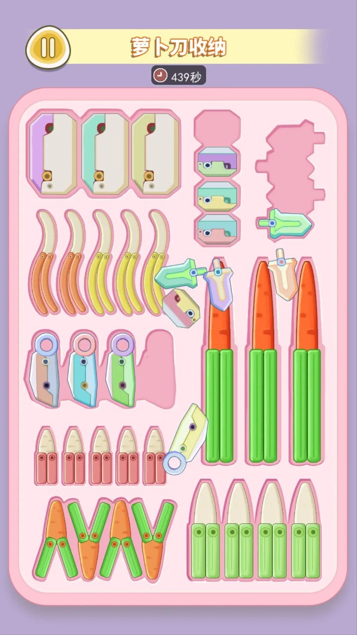 萝卜刀模拟是一款以当前热门萝卜刀元素为主题打造的休闲益智类趣味闯关游戏,游戏中拥有很多个难度不一的关卡,每一个关卡都有不同的任务要求,玩家需要在关卡中控制刀的方向和力度,切萝卜、收纳萝卜刀、制作萝卜刀等,玩法多种多样,值得一试。