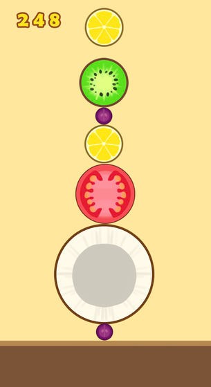 2.通过将相同的水果进行合并尝试不断变大最终合成大西瓜。