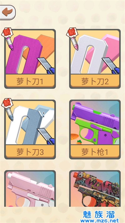 咕卡萝卜刀最新版是一款超好玩的趣味diy类手机游戏,游戏中玩家可以制作一些有趣的萝卜刀,按照自己的喜爱来进行各种贴画的涂鸦,各种有趣的挑战玩法模式都可以自由的尝试挑战,解锁各种有趣的道具来进行萝卜刀的制作,感兴趣的小伙伴快来下载这款咕卡萝卜刀最新版吧!