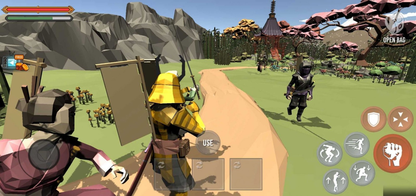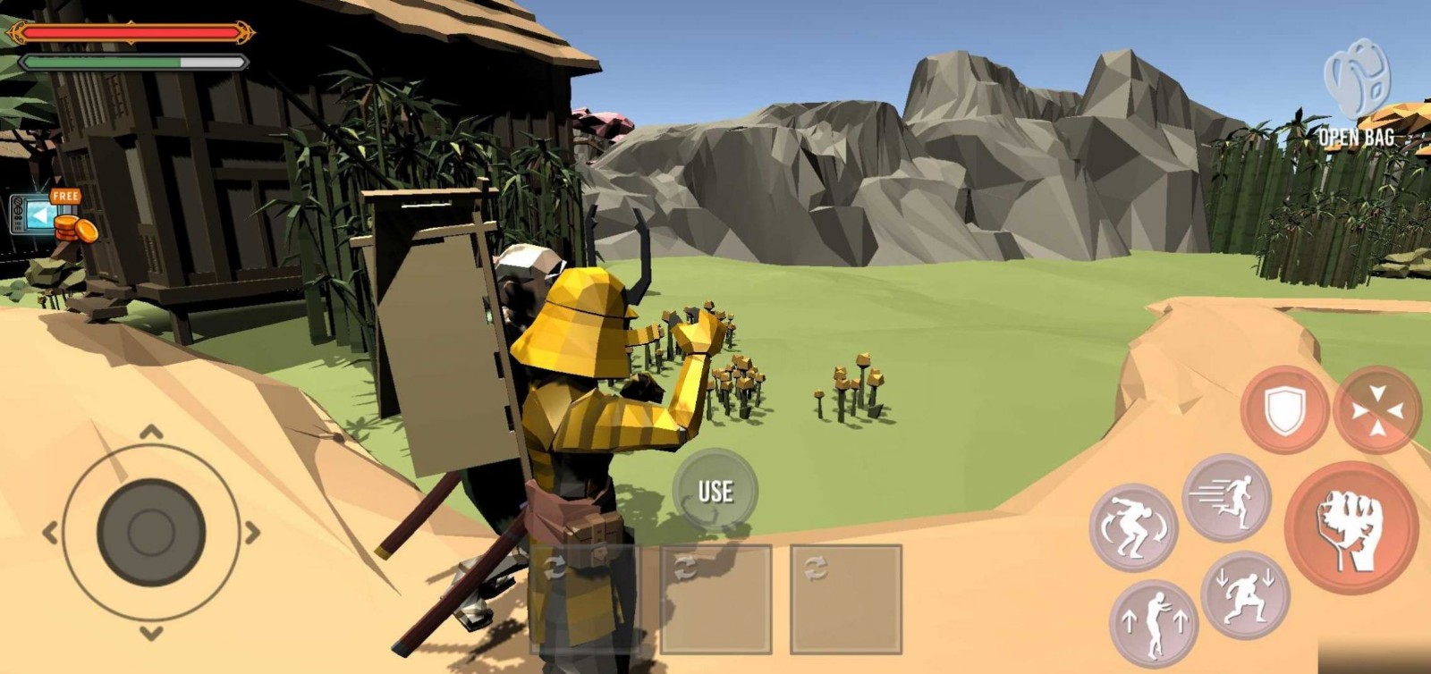 武士生存沙盒模拟器是一款以日本武士为主题的生存模拟游戏,玩家在游戏中扮演一名日本武士,通过在各种环境中生存和战斗,不断提升自己的技能和力量,最终成为一名强大的武士。游戏中有多种武器和装备可供玩家选择,包括剑、弓、箭、盾牌等。