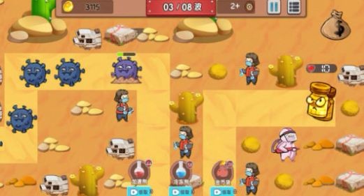 疯狂塔防大作战是一款受欢迎的塔防冒险手机游戏,游戏中玩家需要与病毒进行战斗,可以放置医生、护士等角色向病毒发起攻击,使用升星道具可以强化角色的等级,高效率地消灭这些病毒。游戏中有超过50种不同的敌人,每个敌人都有独特的技能和属性。玩家需要根据不同敌人的特点,选择不同的防御策略和武器,进行有效的应对。