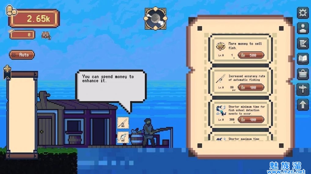 3、可以在自己的码头上建造不同的建筑和设施,通过升级提高钓鱼效率。