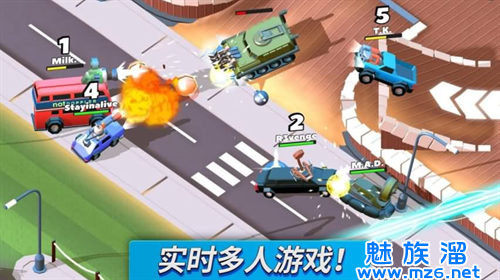 2、多人在线竞技,以撞车为主要的玩法玩起来超级刺激,各种道具可以收集。