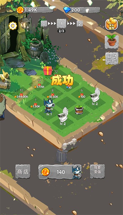 2、升级系统,通过获得道具和经验来提升植物和怪兽的能力;