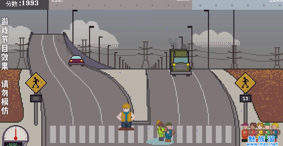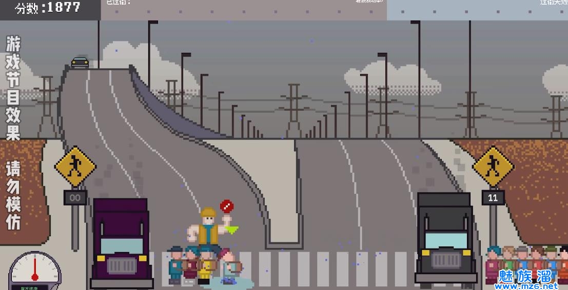 2、独特的故事情节,玩家需要扮演横穿马路的行人,并在尽可能短的时间内跨越快速车流和障碍物;