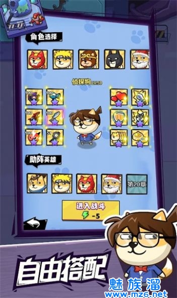 1. 可收集各种狗狗角色,可以升级强化他们的攻击力和技能;