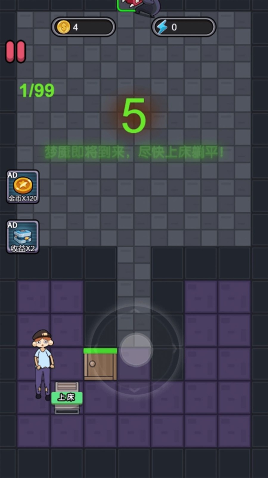 恐怖躺平夜是一款非常刺激的恐怖游戏,玩法类似猛鬼宿舍,玩家需要寻找一个宿舍并躺平来获得金币收益,通过不断的升级自己的床铺来提升金币收益,并利用金币来购买各种各样的防御建筑,升级房门来抵挡怪物的进攻,并最终利用防御塔击杀怪物。