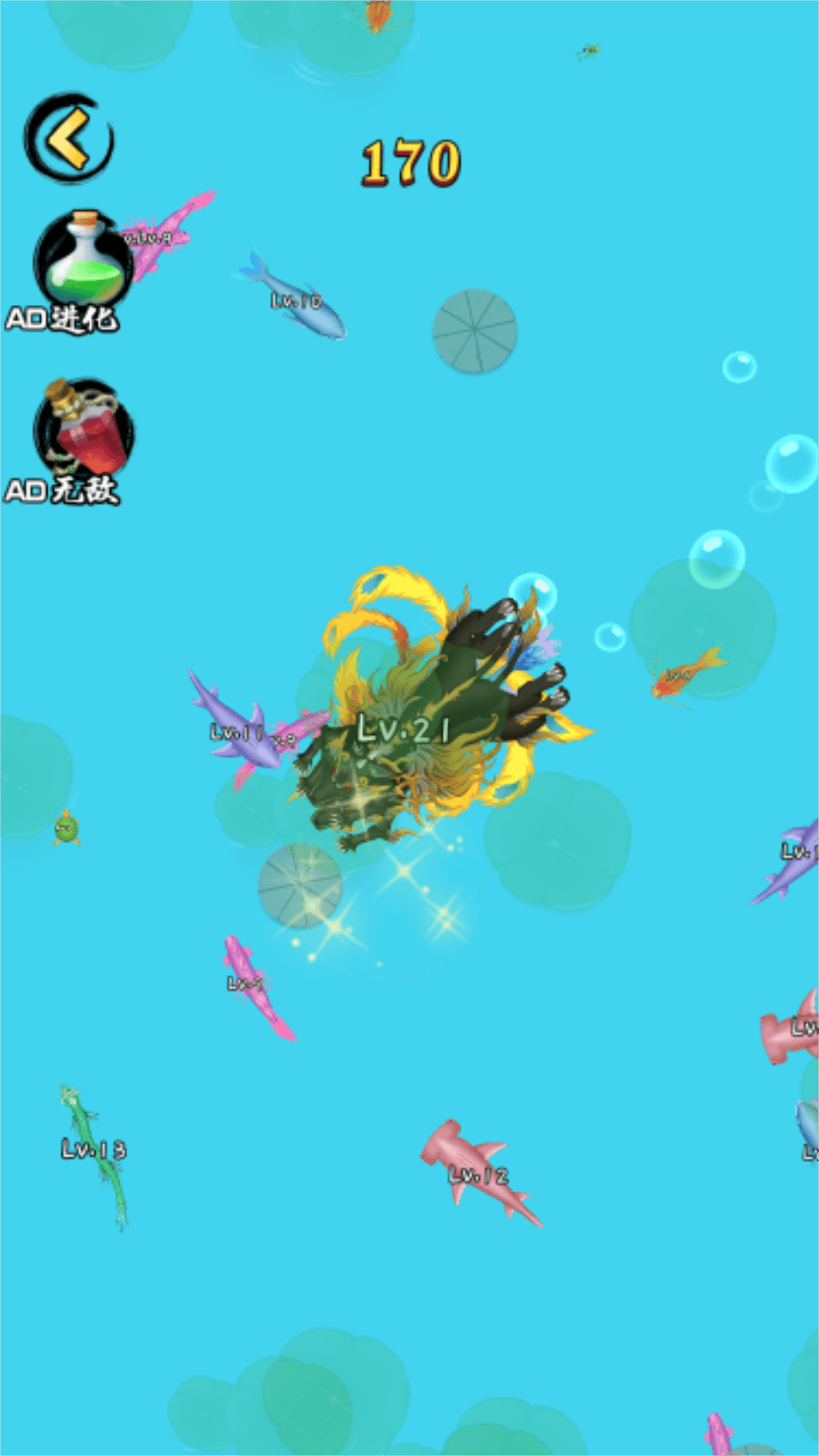 神龙进化之路是一款在抖音非常受玩家欢迎的休闲闯关类小游戏,游戏以吞噬为主题,玩家将会扮演一条生存在海洋中的普通小鱼,通过不断的吞噬海洋中比自己体型还要小的生物来提升自己的等级,增加自己的体型,通过不断的吞噬进化,最终走上神龙进化之路。
