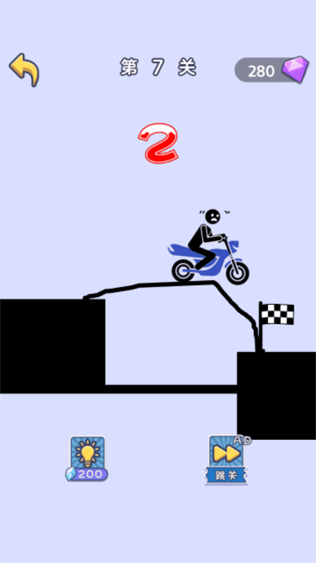 1、通过画笔操作画线,并建立桥梁、楼梯、通道等,帮助火柴人度过每一关;
