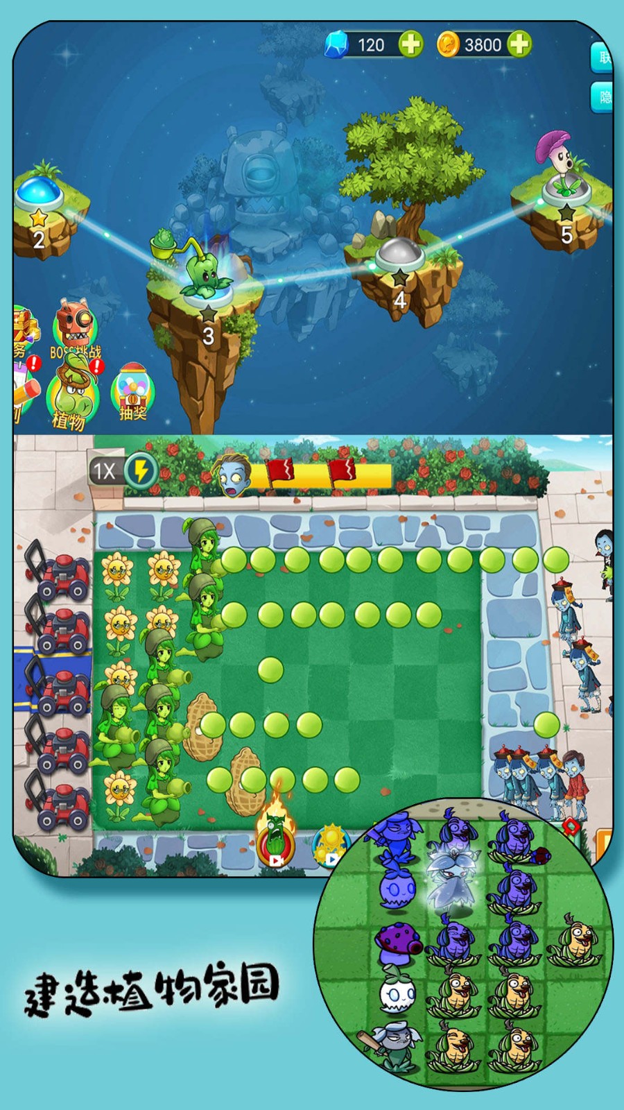 1、强大的防御体系,您需要生产武器,招募植物军队来对抗怪兽的攻击;