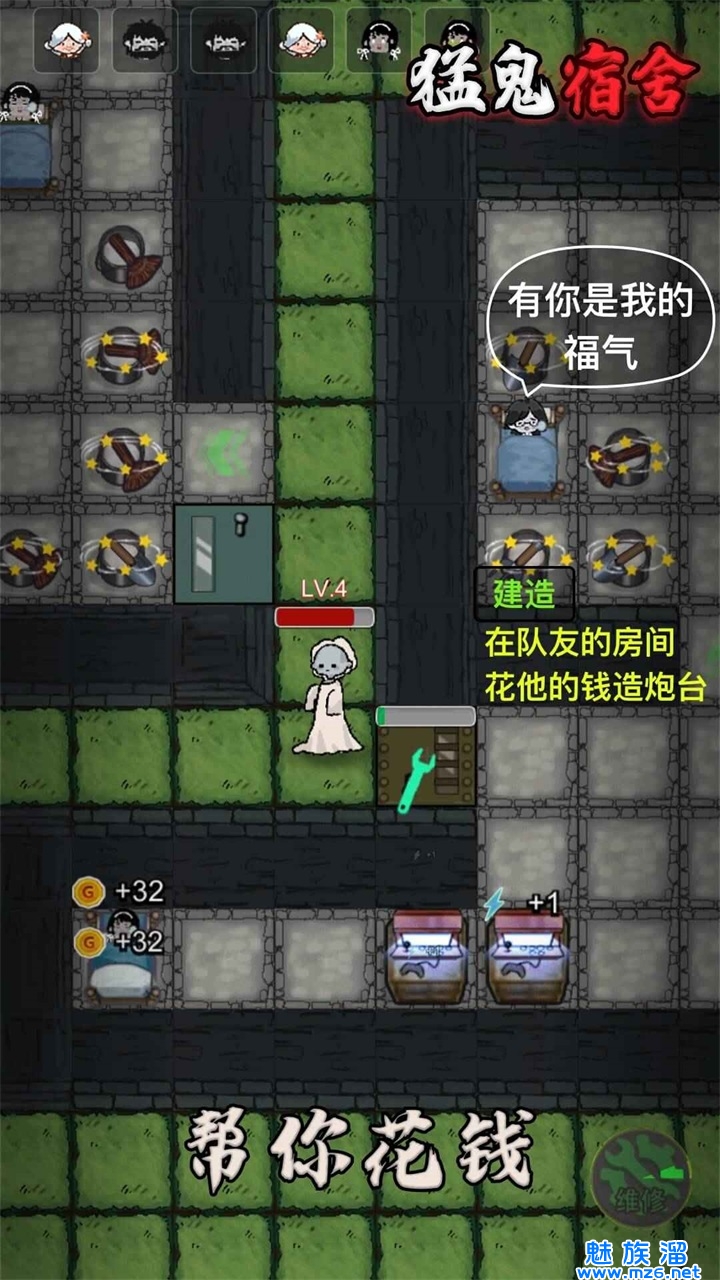 猛鬼宿舍(双人联机版)是一款十分有意思的休闲模拟塔防小游戏!(com.ltpysmz.shanwan.mgss.gzgw)玩家们在游戏中需要去完成各种各样的冒险任务,千万不要被坏人抓住哦,你可以制定一个全面周到的计划然后实行,同时你也可以跟自己的好友们一起联机闯关,这样可以更快速的完成挑战,喜欢的伙伴们快来下载吧。