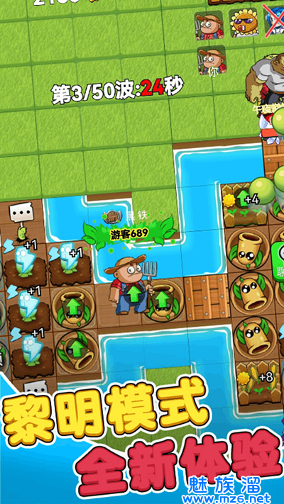 Q版卡通游戏风格,可以看到竖版照片,合理安排植物。
