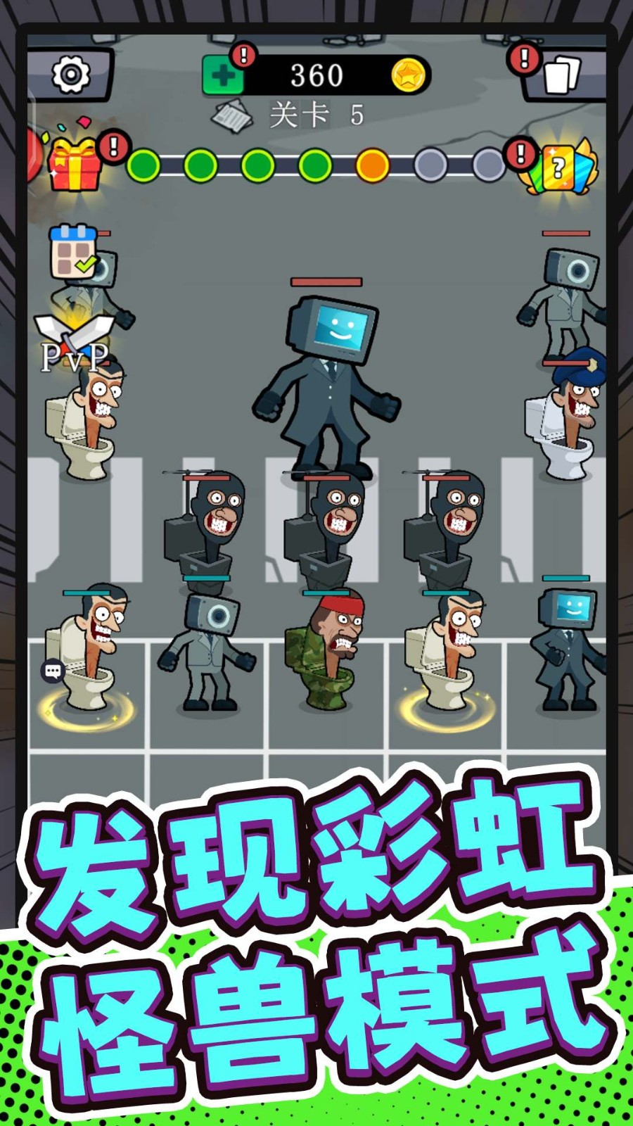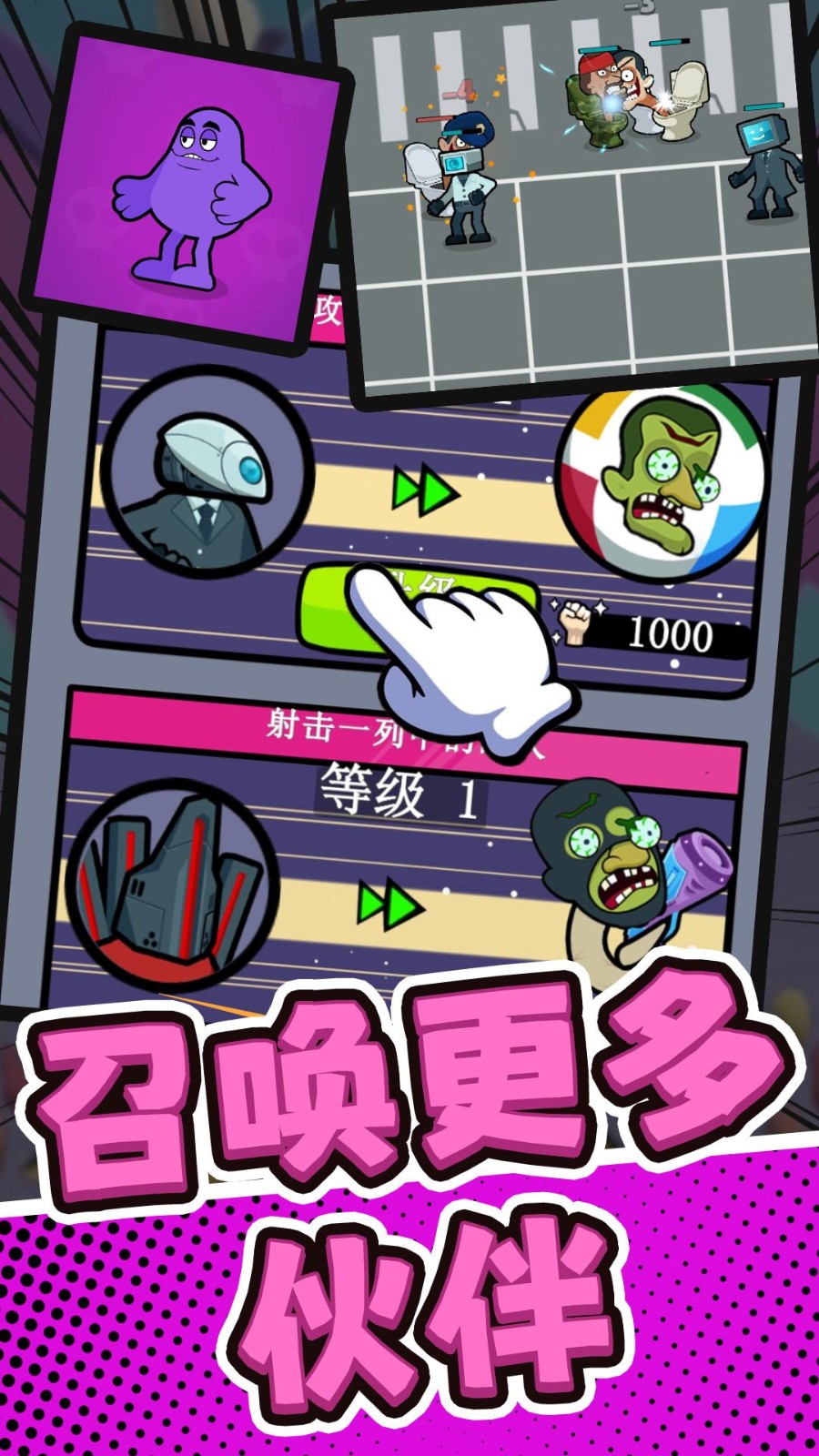 1、招募你的特战队伍并升级它们,兵种包括比如马桶人、监控人、各种怪物等;