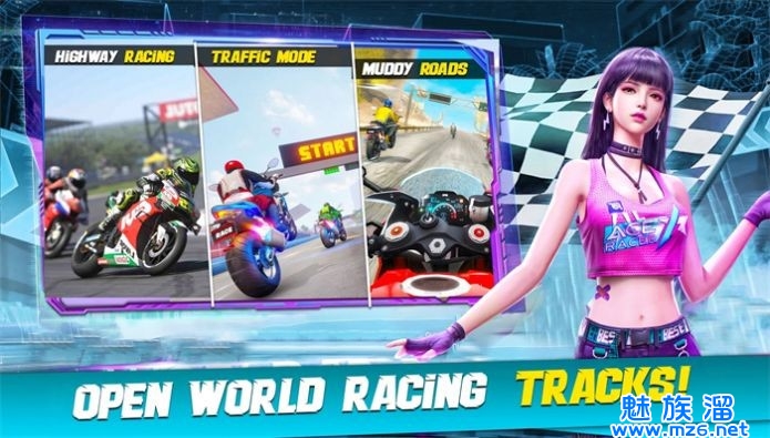 1、逼真细腻的画面和音效,营造出真实的摩托车竞速感受;
