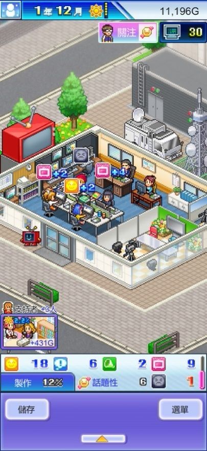 1、拥有一个小型的电视制作公司,玩家需要从零开始,策划并制作出各种类型的电视节目。