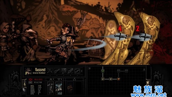 4.第二个技能叫做割裂,这招攻击是攻击两个单位,同时对目标造成流血效果