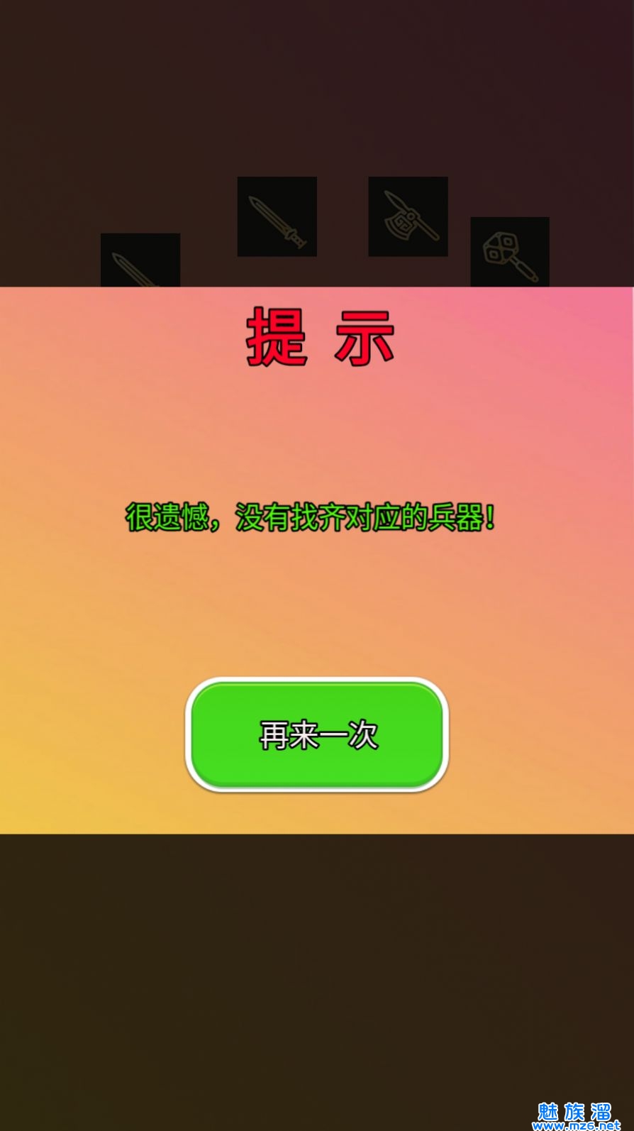 1、通过点击兵器将其消除,需要通过消除相同的图案,获得高分数;