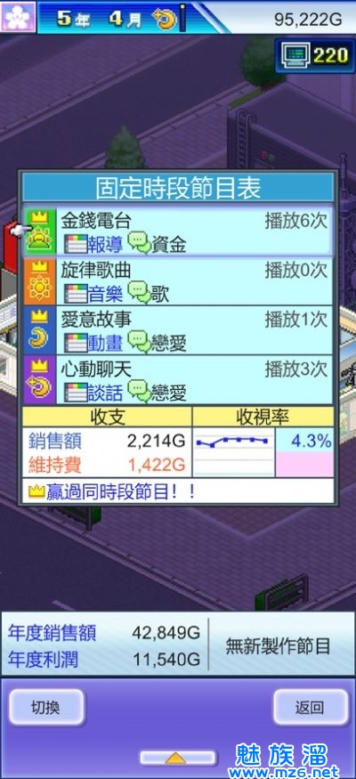 3、内含大量电视行业的真实情景,带领玩家深入感受电视台的风光和荣耀。