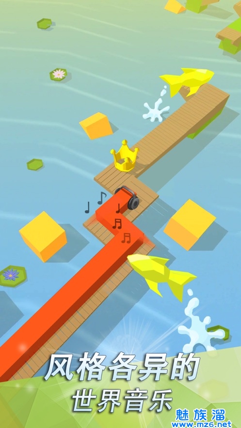 第二个河面区域就来了,这就意味着坑要来啦,要注意啦!这个河面区域的浮块会在音乐响起时才会浮现出来,而且在浮现出来的时候操控的线基本上已经快经过了,所以这里要集中注意力,还是建议大家所玩几次。