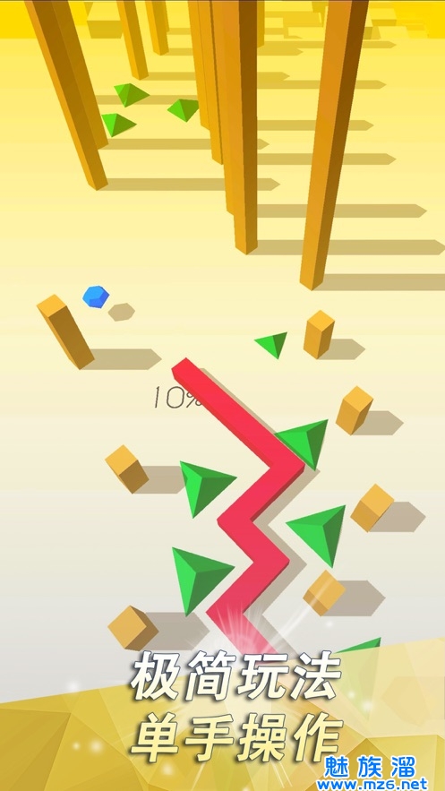 1、游戏没有什么剧情交代,开始之后我们要做的就是循着节奏点击。可以看到在场景中有一个类似小线的东东不断前行,玩家要做的就是在拐角处点击屏幕任何位置来让小线转向,至于转向是否正确就无需玩家操心了,你只需要保证小线不撞墙就好。