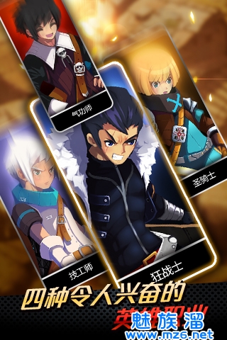 通过四种不同的英雄职业体验游戏:狂战士、机械师、魔法师和圣骑士- 每种职业都有独一无二的能力与特殊招式!