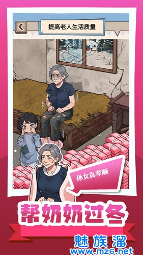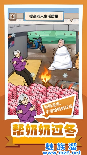 帮奶奶过冬(com.zsfz.bnngd.vivo)结合了丰富的场景设计和剧情故事,同时还有解谜闯关的玩法。玩家可以通过完成解谜任务,积累关卡的奖励,从而成功帮助角色度过难关。游戏十分考验玩家的思考能力,每个意想不到的方法都有可能是解开谜题的关键。喜爱这款游戏的玩家可以来下载体验。