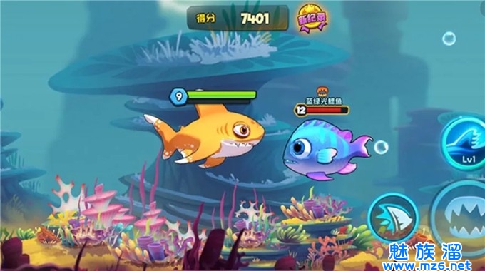2.独特的道具与玩法,从小到大的成长过程,与其他玩家竞争谁是最大的鲨鱼