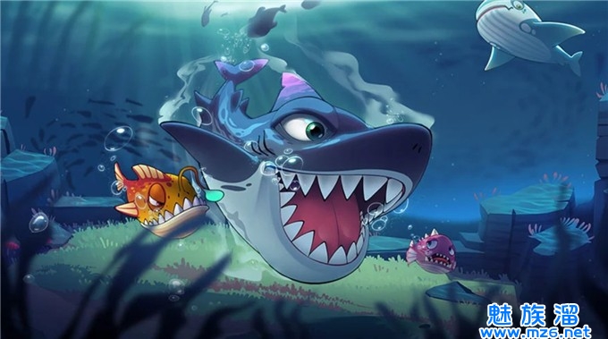 3.卡通海底风格的画面制作,新颖的大型战斗,可以扮演鲨鱼进行吞噬与成长