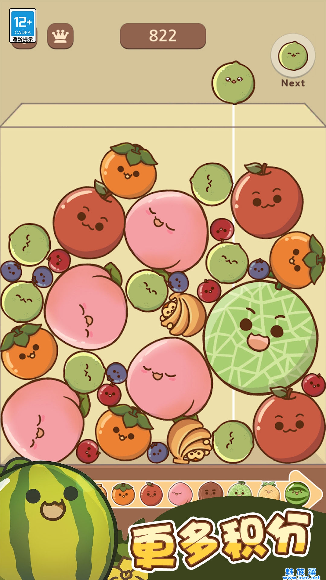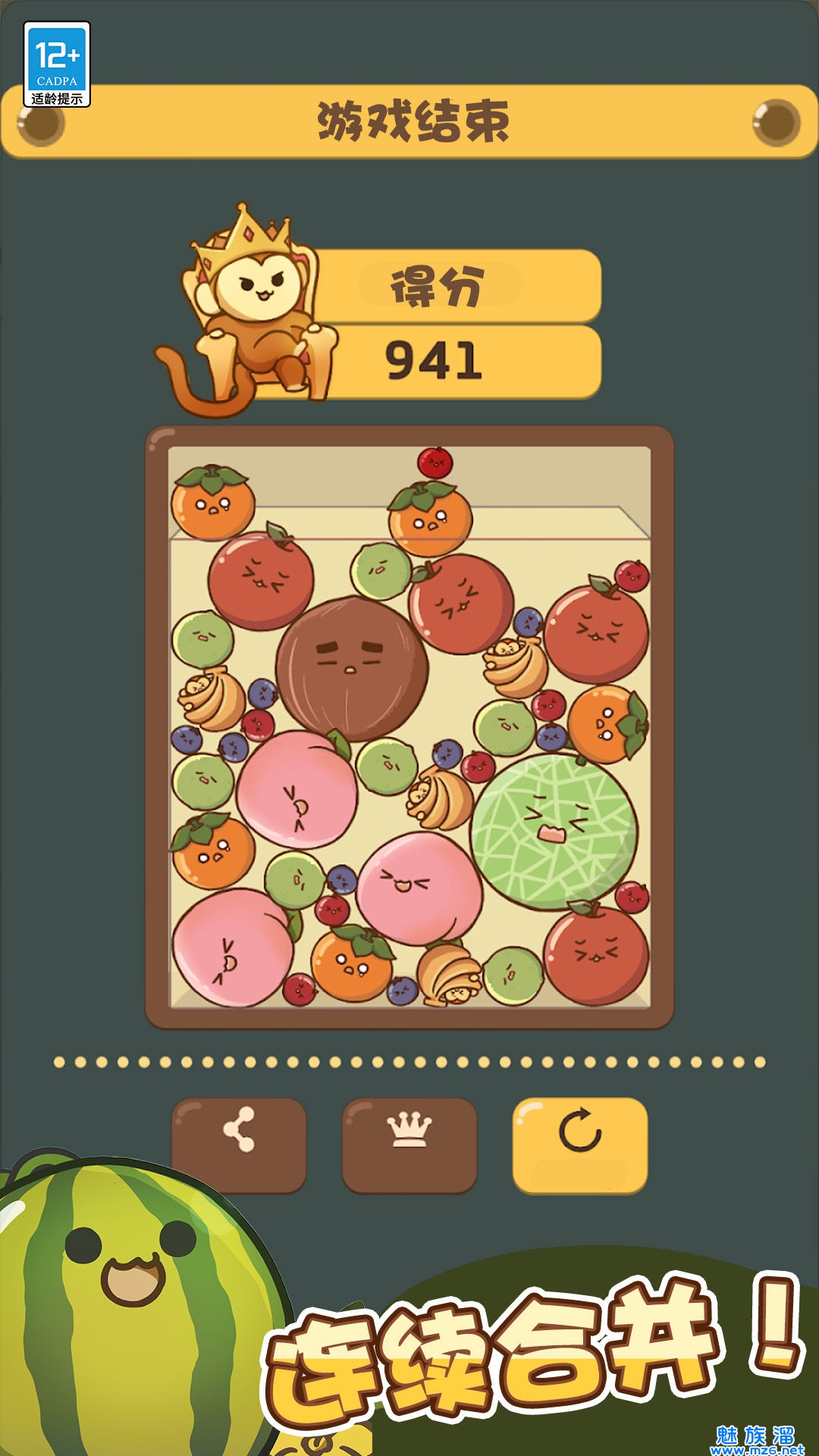 2、通过消除合成水果,收集能量并进入下一关卡,