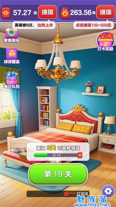 2、完成关卡后将获得奖励,可以用来购买家具、墙纸和地板等装饰材料。