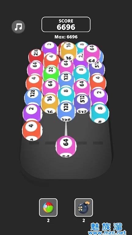 1、游戏玩家需通过滑动与点击将相同数字的彩球合并为更高位数的球,把它们加起来,直到达到2048的目标。