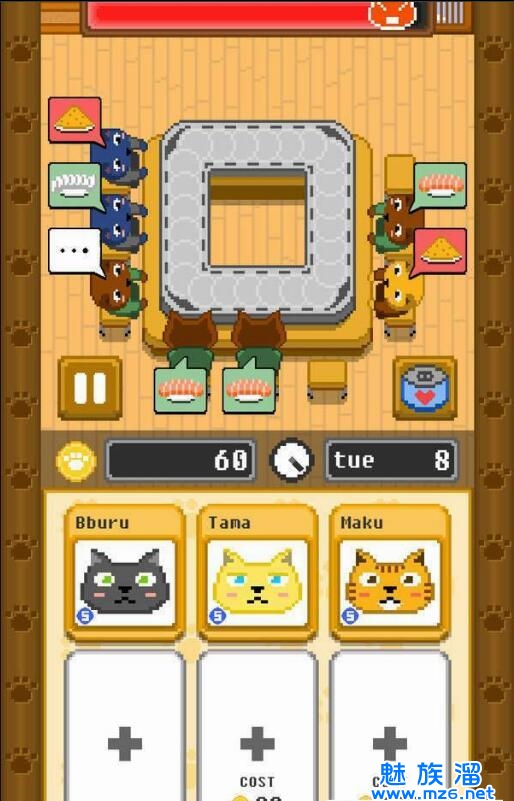 1、玩家除了想办法运营一家好的寿司店之外,还需要抵挡对店里的食物充溢野心的野猫。