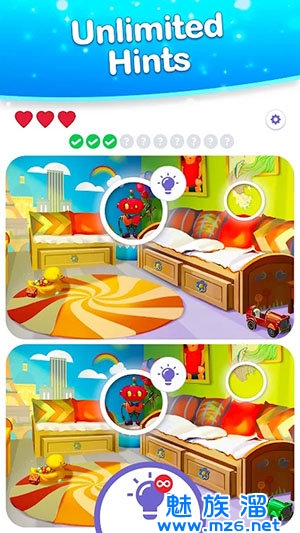 2.每个关卡都隐藏着一些差异。 玩家需要找到并解决这些差异才能通过关卡。