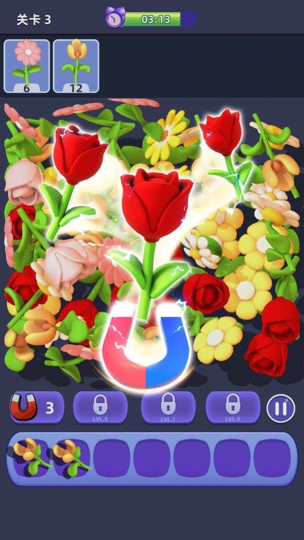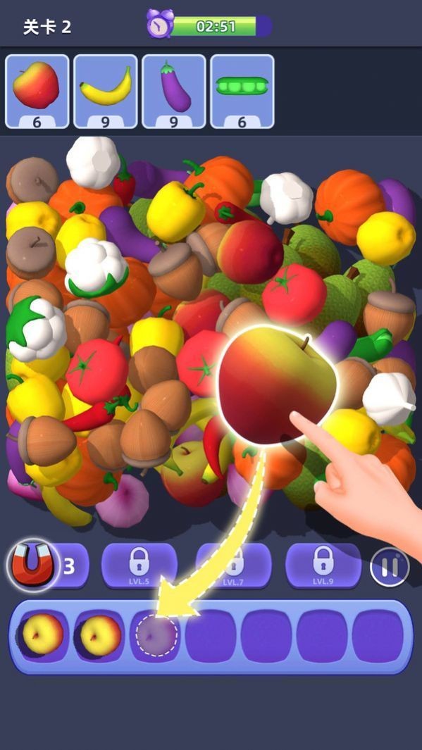 玩家需要通过消除相同图案来完成关卡任务。每个级别都有不同的难度和挑战;