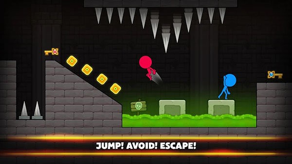 有趣的挑战等着你来。加入游戏,玩家可以同时控制红色和蓝色火柴人克服危险的陷阱,完成不同级别的关卡,