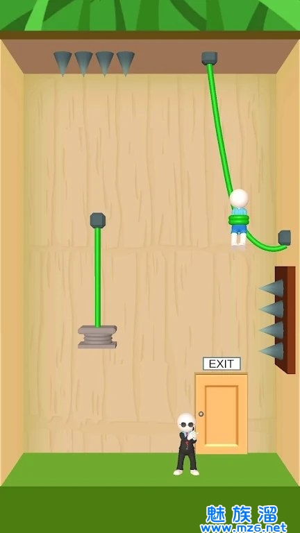 非常休闲的玩法操作,只要对于小人的位置进行判断,就能将绳子进行切断。