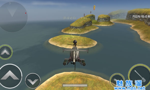 1、游戏中共有四种模式可供选择,除了全键盘模式之外,还可以通过重力感应分别控制直升机前进后退或者是上下飞行等等。