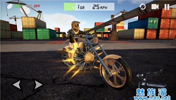 3、游戏中使用重力感应的方式来操控你的摩托,倾斜你的手机以左右转向避开汽车;