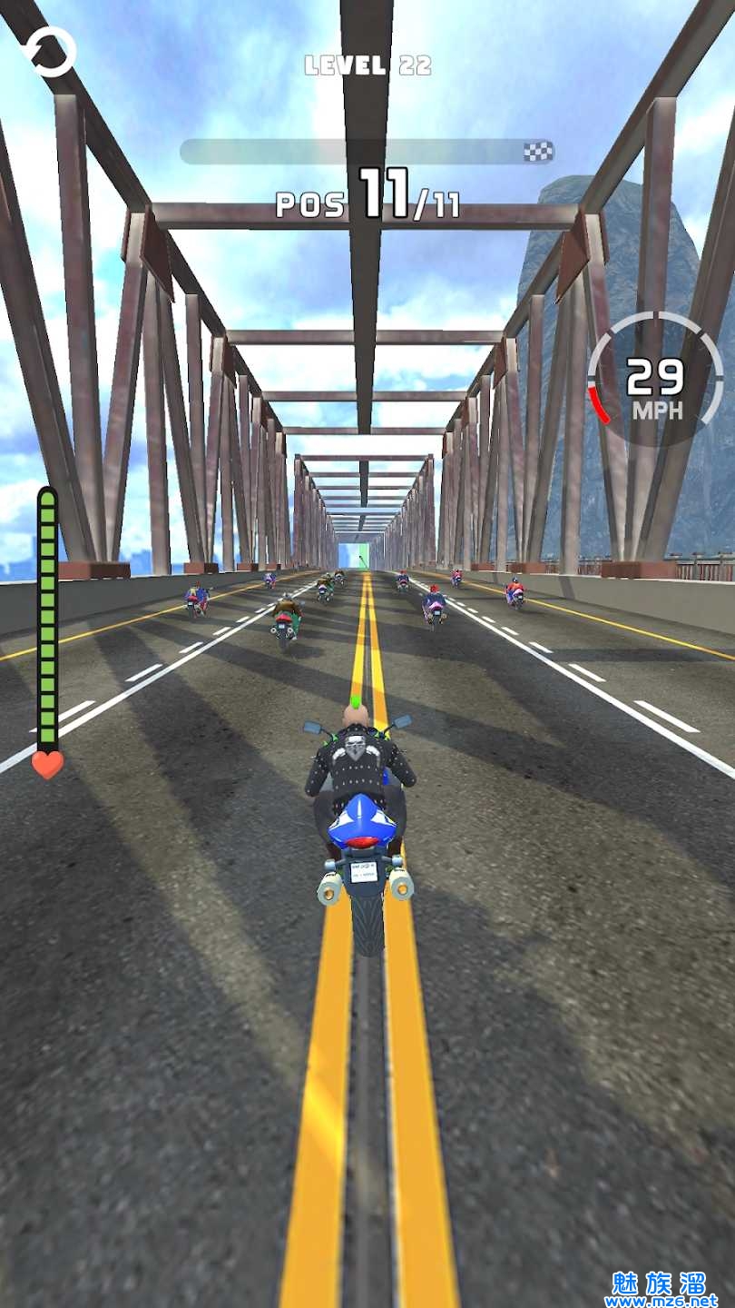 1、高速刺激的竞速玩法,搭配硬核的物理引擎,真实模拟摩托车的驾驶手感和碰撞效果;