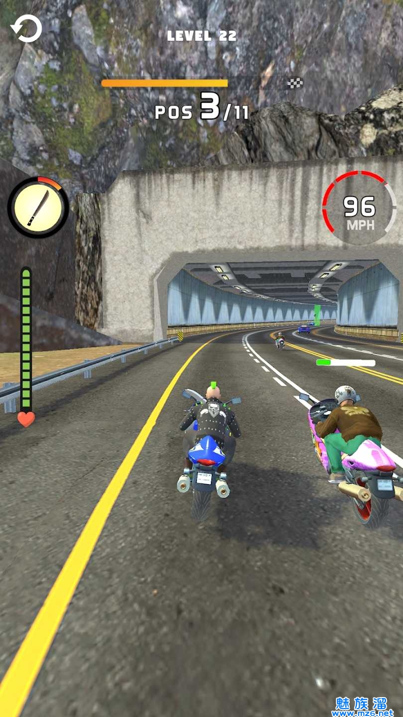 2、独特的暴力摩托主题,融入激烈的碰撞和攻击元素,让竞速不再仅仅是速度的较量;