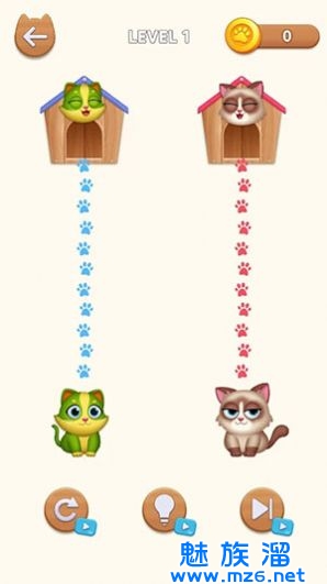 3、如果您喜欢解谜游戏,那么猫咪冲刺画线到家一定会是您不容错过的好游戏,让我们共同来帮助猫咪解决困难。