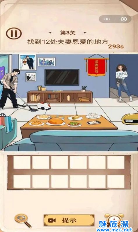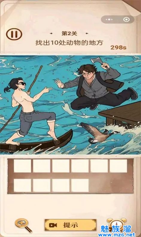 1、是寻找场景中不合理的地方的找茬游戏,