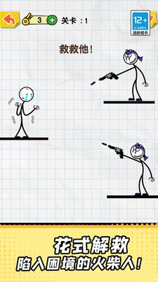 手指画线达人烧脑版是一款休闲益智类烧脑穿管游戏,游戏以火柴人为主题,玩家可以在游戏中通过手指互动屏幕来控制火柴人的动作。游戏拥有很多个不同的关卡, 不同的关卡拥有不同的闯关挑战,玩家需要控制火柴人通过各种不同的方式来挑战任务,完成关卡。