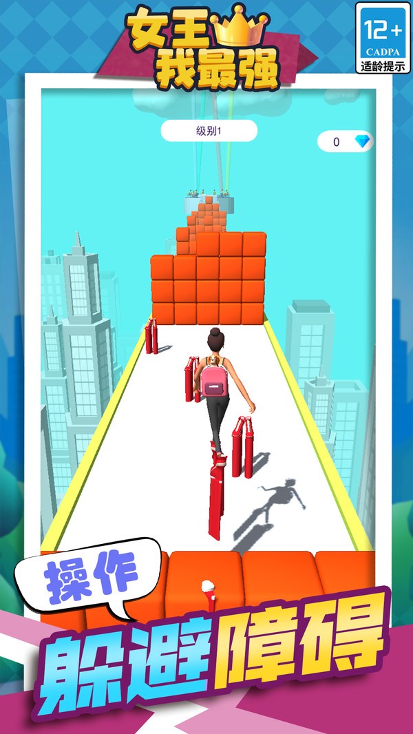 1、玩家可以操作跑鞋形象的女王快速而灵活地穿过各种障碍物;